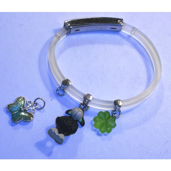 Ein Anhänger ging verloren. Als Ersatz haben wir den grün-silbernen Schmetterling (kein NICI) angehängt.