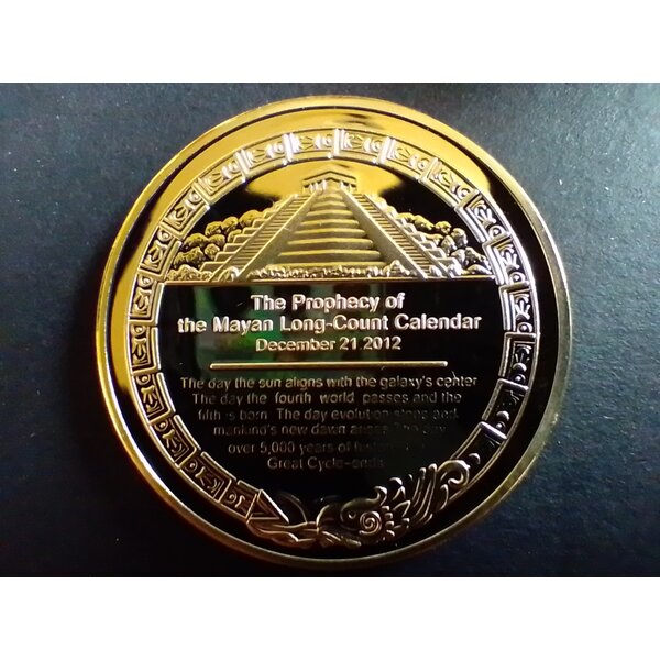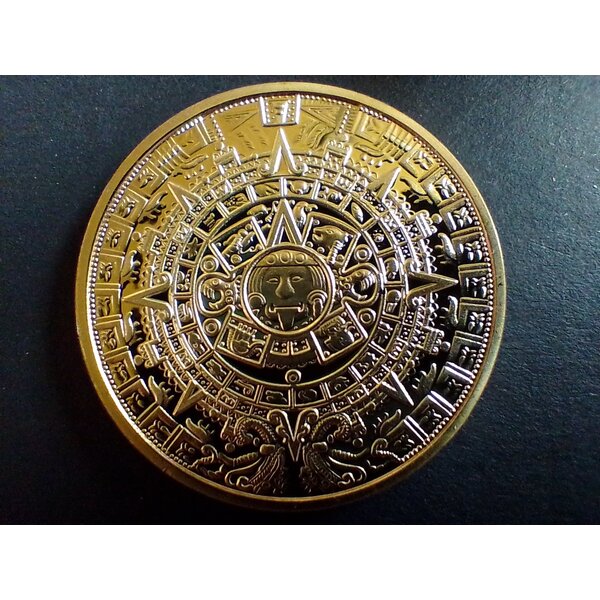 Farblich komplett in gold gehalten und voll von mystischen Symbolen ist diese Medaille ein Muss für Freunde des Themas 2012 ... Maya Kalender / Ende der Welt - Material vermutlich unedel.