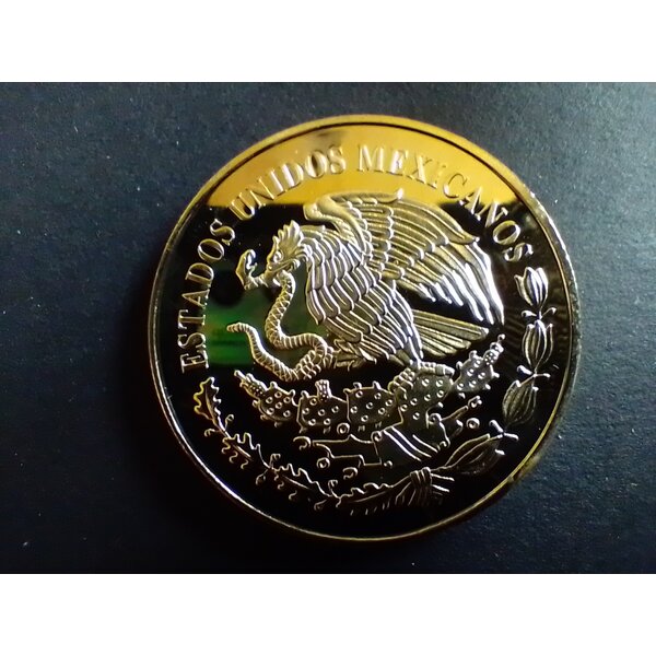 Farblich komplett in gold gehalten erinnert diese Medaille an den mexicanischen Libertad, die Goldmedaille, die in der ältesten noch aktiven Prägeanstalt Mexikos geprägt wird.