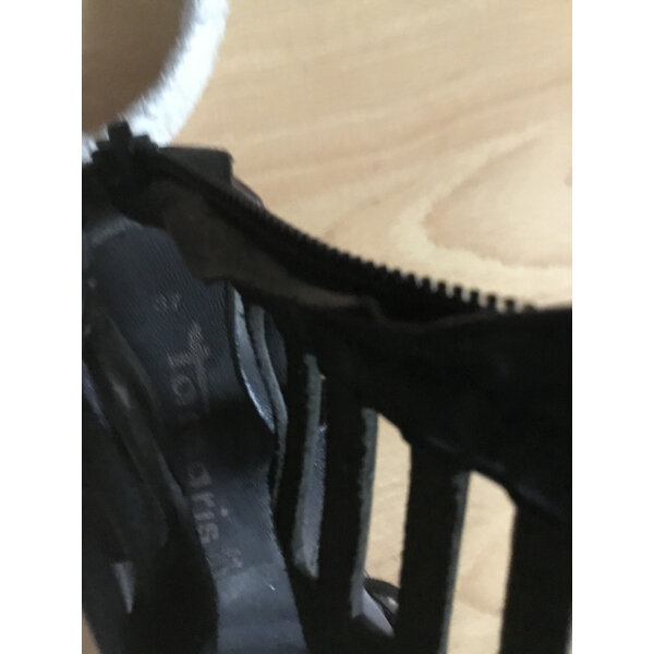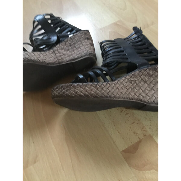 Ich biete Ihnen hier wunderschöne schwarze Sandalen an, echt Leder, mit Reisverschluss hinten! Mit schönem Kork-Plateau!