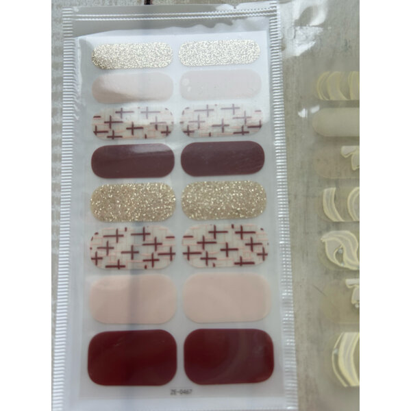 Super coole Nagellackfolie. Einfach auf den Nagel kleben, überschüssige Folie wegfeilen, fertig! Hält super lange!!! Ich habe einfach Zuviel davon.