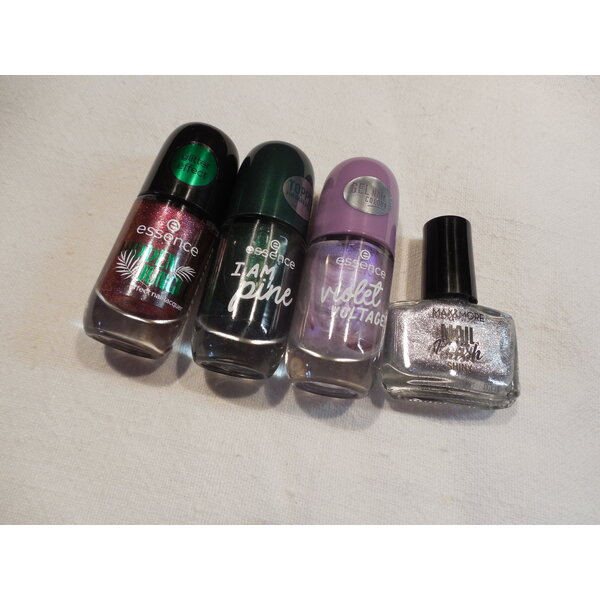 grün, lila, rot (etwas Glitzer), Silber Glitzer, teils wenig entnommen.