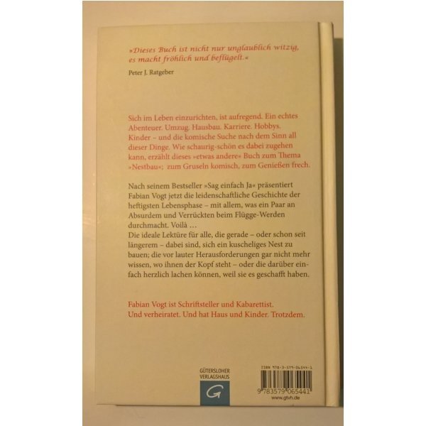 Fabian Vogt bringt die vielen vertrauten und gern verdrängten Erfahrungen der "Nestbauzeit" ironisch-liebevoll auf den Punkt. Damit löst er herzliche Lachattacken aus, regt aber zugleich auf unterhaltsame Weise zum Nachdenken darüber an, wie die beschriebenen Klippen des Daseins stilvoll umschifft werden können.
