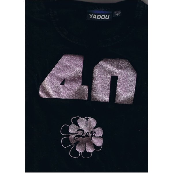 Fetziges Mädchenshirt in schwarz mit Glitzerdruck. Die angegebene Größe von 140 passt definitiv nicht, sondern das Shirt entspricht eher einer 122/128. Daher bitte vor dem Anfordern Maße vergleichen: