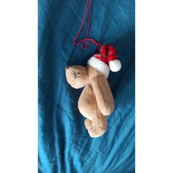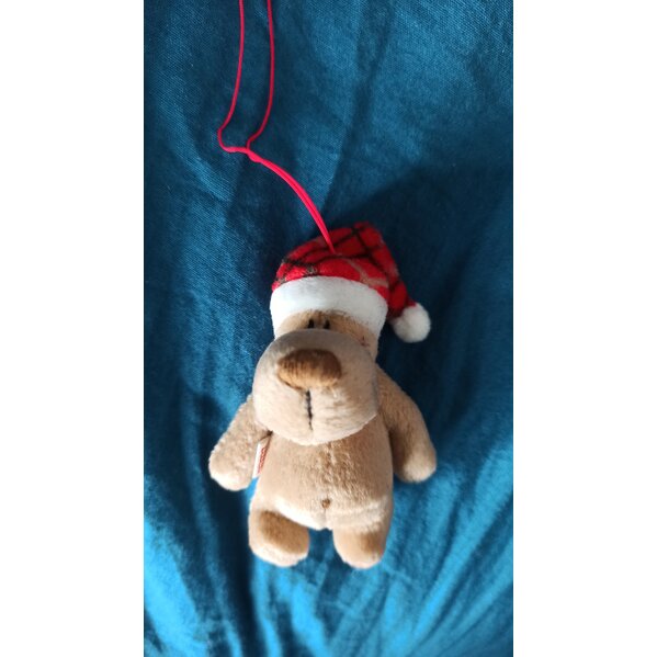 Ein süßer nici Bär, den man an die Tasche, das Handy oder den Weihnachtsbaum hängen kann. Wenn man einen Schlüsselring ranmacht, könnte man ihn auch für Schlüssel verwenden