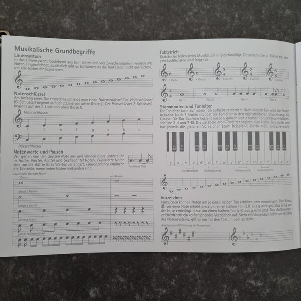 Mit musikalischen Grundbegriffen als Erklärung auf Seite 2
