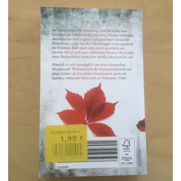 An einem kalten Novembertag wird im idyllischen Kinzigtal ein Meteorologe erstochen. Martin Velsmann, dienstältester und zugleich erfolgreichster hessischer Kommissar, tappt bei den Ermittlungen weitestgehend in Dunkeln. Kurz nach dem ersten geschieht ein zweiter Mord nach ganz ähnlichem Muster: Die Leiche eines Badegehilfen weist über dreißig Messerstiche auf.