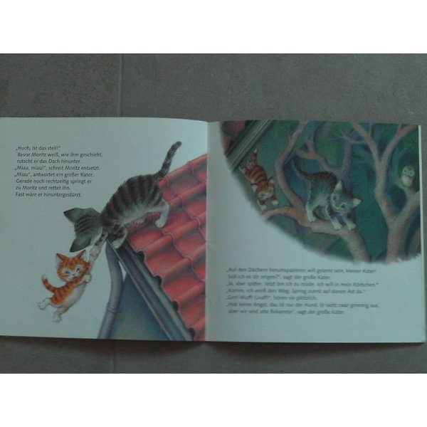 Der kleine Kater Moritz ist nachts ganz allein im Haus unterwegs. Was sind denn das für Schatten? Wohin führt der dunkle Tunnel in der Wand und welch seltsame Mäuse hängen auf dem Dachboden an der Decke? Ob Moritz mutig genug ist, es herauszufinden?
