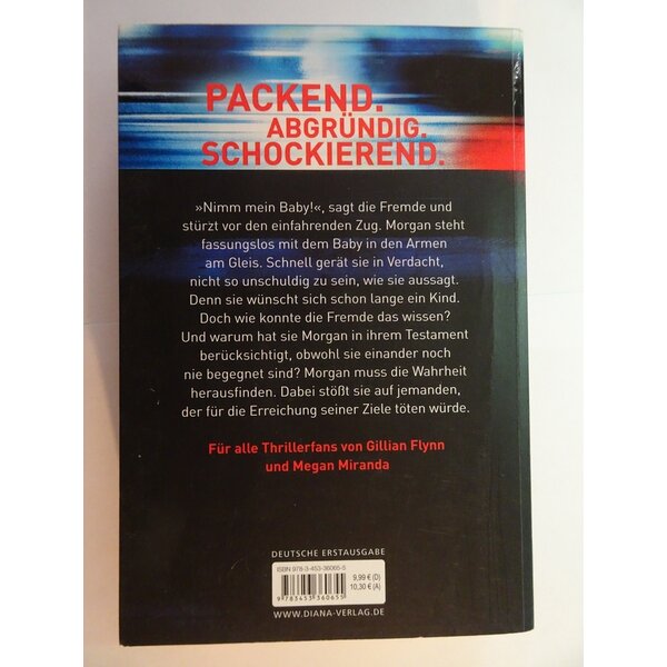»Nimm mein Kind!«, sagt die Fremde und stürzt vor den einfahrenden Zug. Morgan steht fassungslos mit dem Baby in den Armen am Gleis. Schnell gerät sie in Verdacht, nicht so unschuldig und ahnungslos zu sein, wie sie aussagt. Denn sie wünscht sich schon lange ein Kind. Doch wie konnte die Fremde das wissen? Und wieso hat sie Morgan in ihrem Testament berücksichtigt, obwohl sie einander noch nie begegnet sind? Morgan muss die Wahrheit herausfinden. Dabei stößt sie auf jemanden, der für die Erreichung seiner Ziele töten würde …
