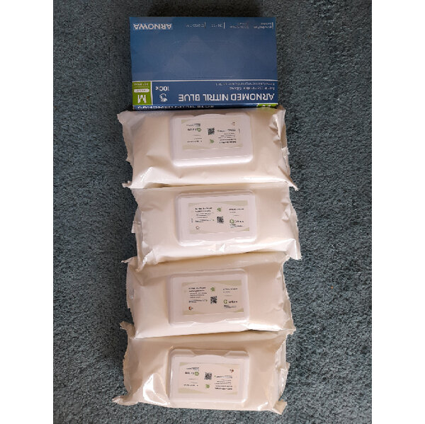 4 Packungen Flächendesinfektionstücher a 80 Stück haltbar bis 10/2026; 1 Packung Nitril Handschuhe gr. M Haltbar bis 11/2029