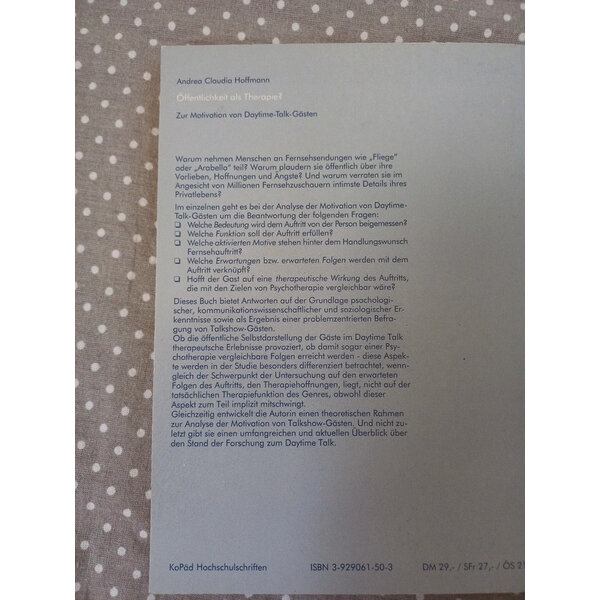 Dieses Buch bietet Antworten auf der Grundlage psachologischer, kommunikationswissenschaftlicher und soziologischer Erkenntnisse sowie als Ergebnis einer problemzentrierten Befragung von Talkshow-Gästen...