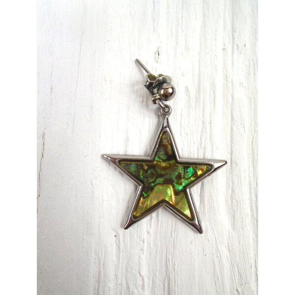 Sternchförmiger Ohrhänger in Grüntönen changierend.