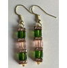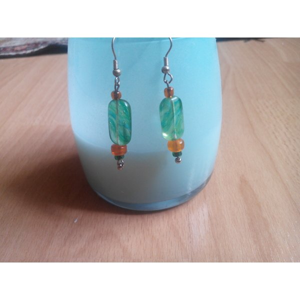 Ohrhänger mit großer Grüner Glasperle und kleineren in Orange, silberne Metallelemente (nickelfrei). Handgefertigt.