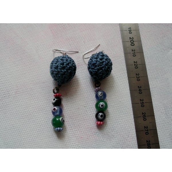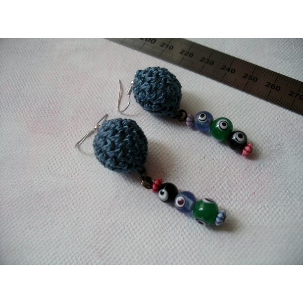 süße Ohrringe mit taubenblauer gehäkelter Perle und Glasperlenan silbernem Ohrhänger