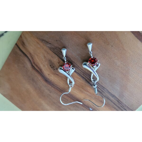 Ca. 3 cm lang, Modeschmuck silbern mit rotem Glitzerstein