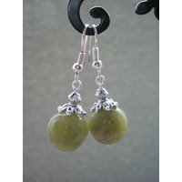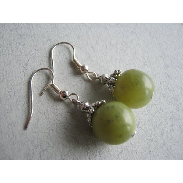Die Ohrringe bestehen aus nickelfreien Metallelementen und Halbedelsteinperlen in grün.