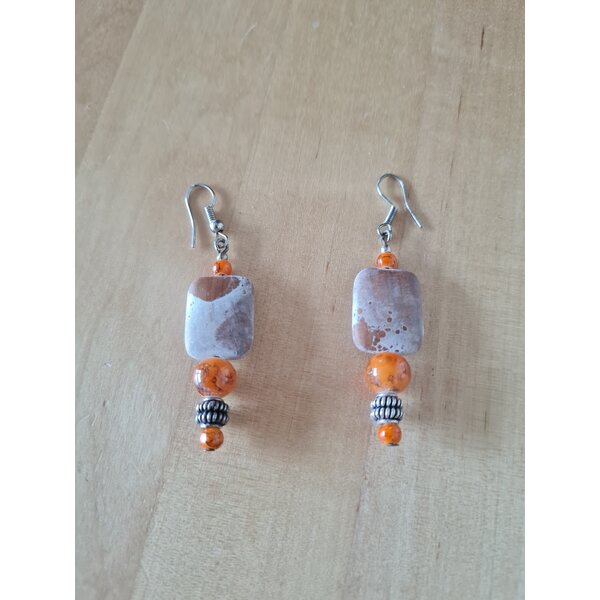 Neuwertige Ohrringe mit Steinelementen. Länge 6 cm.