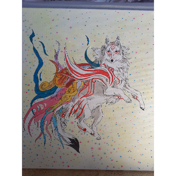 Selbst gemaltes aquarell Bild. Figur aus dem Spiel "okami",