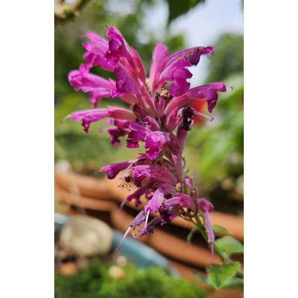 An Orangen erinnernder Duft, mehrjährige Staude die allerdings (zumindest hier in Südbayern) nicht ganz winterhart ist. Absoluter Anziehungspunkt für Hummeln und andere Insekten. Soll angeblich Mücken vertreiben, wird deshalb auch Moskitopflanze genannt.