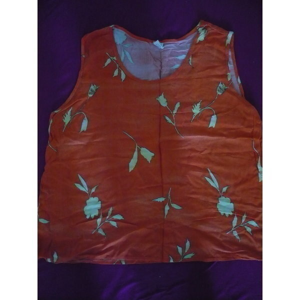 Schönes Top in warmem Orange, etwas meliert, weicher Stoff, Maße: Unterambreite 50cm, Länge 56cm, untere Saumbreite 55cm, 100% Viskose.