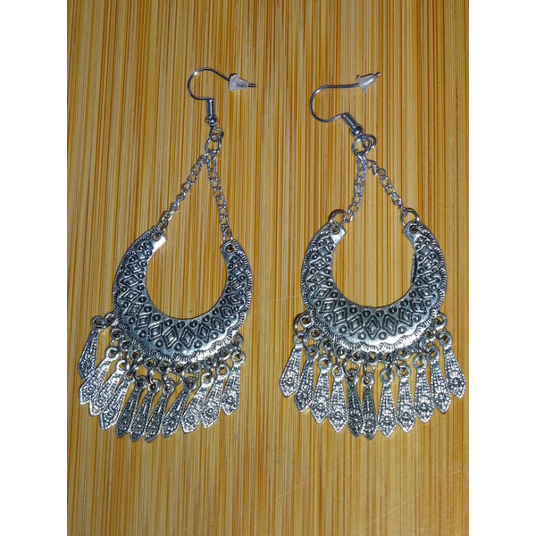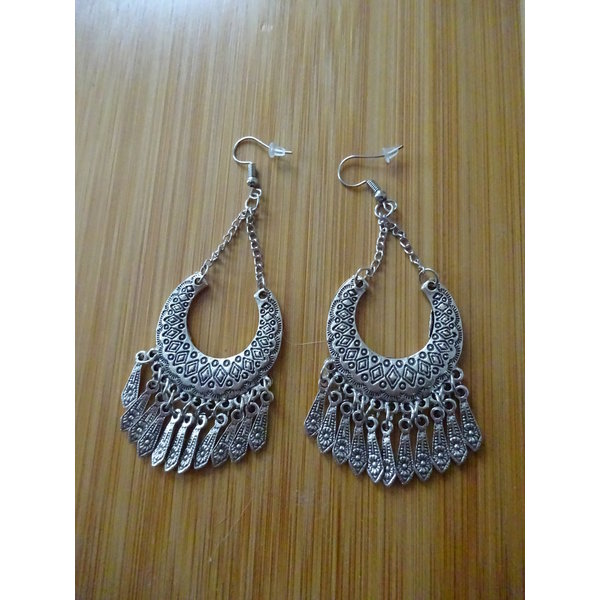 Silberfarbene, orientalische Ohrringe mit schönen detailreichen Gravuren. Die abgebildeten Silikonstopper gehören mit dazu.