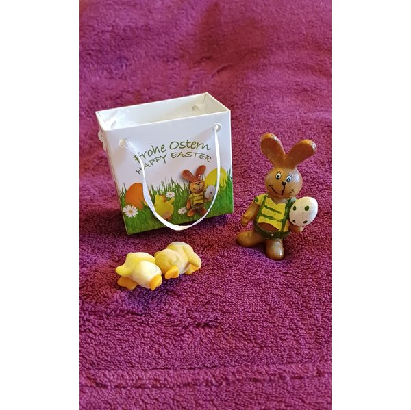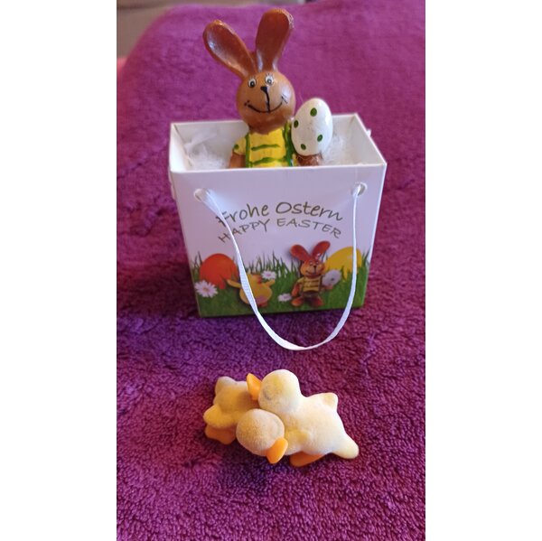 Dekohase aus Ton (?) in passender Papiertüte und zwei sich umarmende Enten