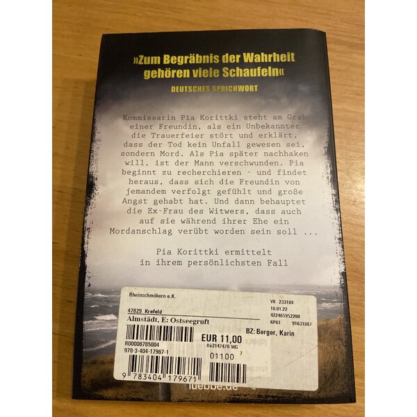 Kommissarin Pia Korittki steht am Grab einer Freundin, als ein Unbekannter die Trauerfeier stört und erklärt, dass der Tod kein Unfall gewesen sei, sondern Mord. Als Pia später nachhaken will, ist der Mann verschwunden. Pia beginnt zu recherchieren - und findet heraus, dass sich die Freundin von jemandem verfolgt gefühlt und große Angst gehabt hat. Und dann behauptet die Ex-Frau des Witwers, dass auch auf sie während ihrer Ehe ein Mordanschlag verübt worden sein soll ...