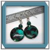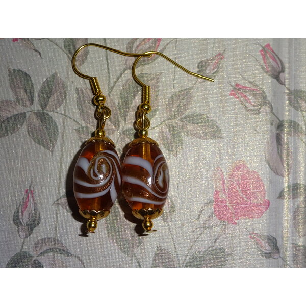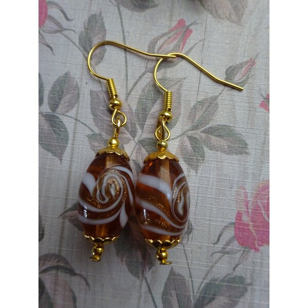 Ohrringe aus Lampwork-Perlen, in die feiner Glitzerstaub eingearbeitet wurde. Mit einem weißen Wirbel in der Mitte.