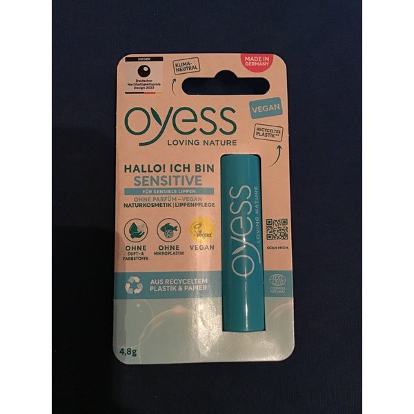 Ich bin die Rettung für sensiblen Lippen! Mein Motto ist „weniger ist mehr“, daher enthalte ich nur 6 Inhaltsstoffe und verzichte komplett auf Duft- und Farbstoffe. Ich bin vegan und liebe es, deine gestressten Lippen zu beruhigen.