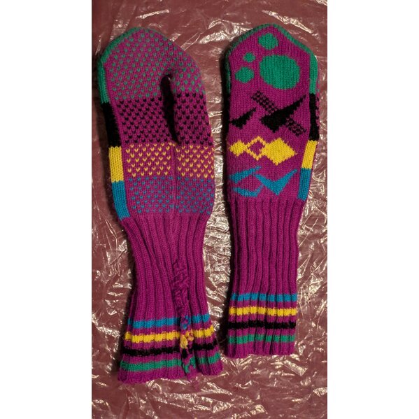 Grün-pinke schöne Handschuhe, wie neu