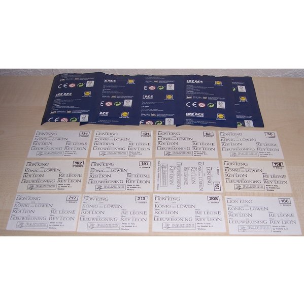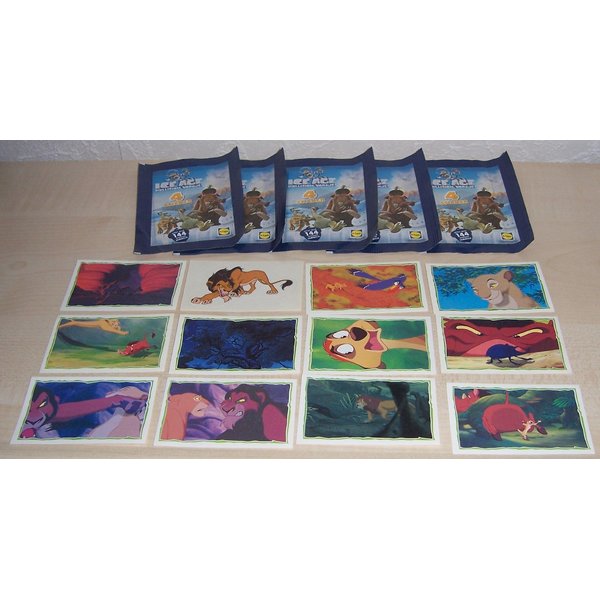 13 Panini Sammelbilder König der Löwen 90er Jahre, Nr. 33,60, 62, 131, 134, 158, 161, 162, 186, 197, 208, 213, 217. Dazu lege ich noch 5 ungeöffnete Päckchen von Ice Age-Kollision Voraus dazu.