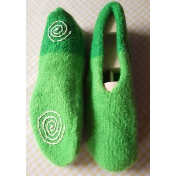 Von mir gestrickte und gefilzte Pantoffel mit Rutschbremse.