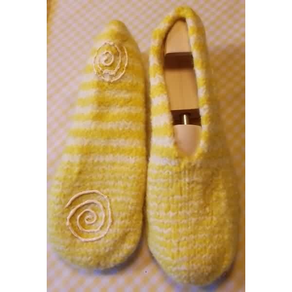 Von mir gestrickte und gefilzte Pantoffel mit Rutschbremse.