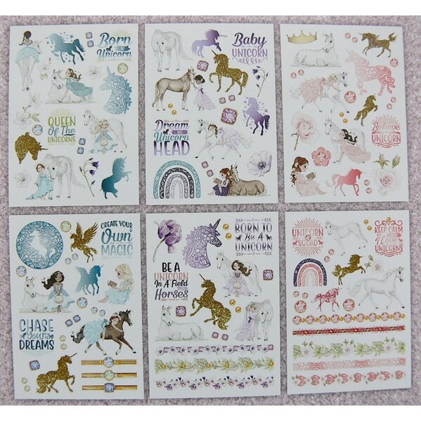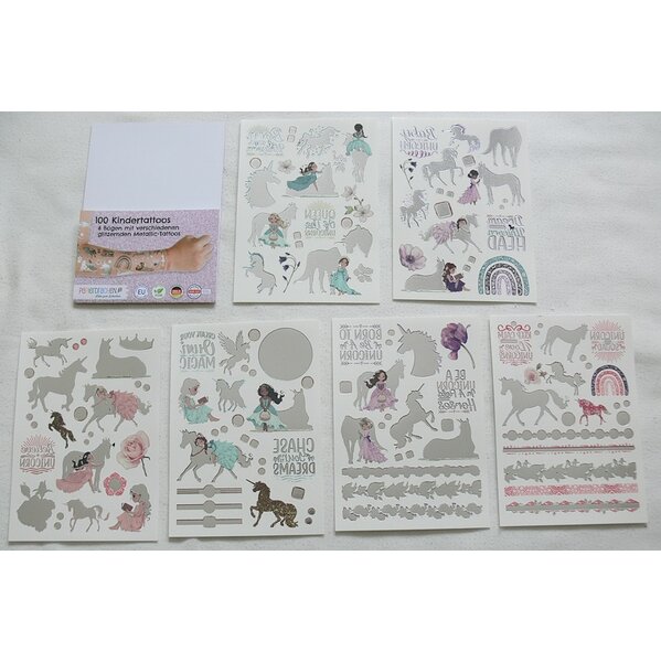 6 verschiedene Blätter mit Metallic-Tattoos.