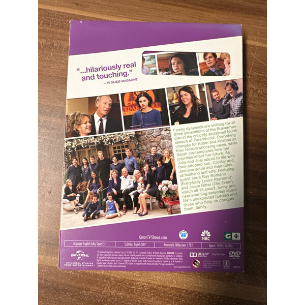 Family dynamics are shifting for all three generations of the Braverman clan in the critically acclaimed fourth season of Parenthood. Everything changes for Adam and Kristina as they receive shocking news, while Sarah contemplates how her priorities affect her future. As Julia and Joel adjust to life with their adopted son, Crosby and Jasmine settle into their roles as husband and wife. Featuring guest stars Ray Romano (Everybody Loves Raymond) and Jason Ritter (The Event), watch all 15 smart, funny and heartwarming episodes about life's unexpected hurdles and those who help us conquer them: family.