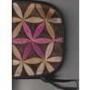 Patchwork-Handtasche Leder mit 2 Reisverschluss-Taschen innen und außen, Grundfarbe braun mit bunten Vierecken, Metallringe am Henkel