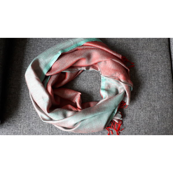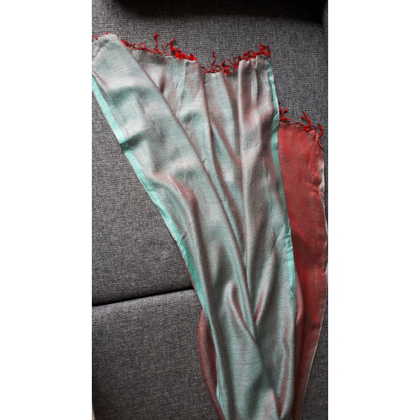Sehr schön changierender Schal in Mintgrün und Rot. Fließendes, anschmiegsames Matrial.