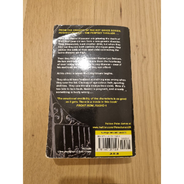 John and Naomi Klaesson are grieving the death of their four-year-old son from a rare genetic disorder. They desperately want another child, but when they find out they are both carriers of a rogue gene, they realize the odds of their next child contracting the disease are high. Then they hear about geneticist Doctor Leo Dettore. He has methods that can spare them the heartache of ever losing another child to any disease—even if his methods cost more than they can afford. His clinic is where their nightmare begins. They should have realized that something was wrong when they saw the list. Choices of eye color, hair, sporting abilities. They can literally design their child. Now it's too late to turn back. Naomi is pregnant, and already something is badly wrong.