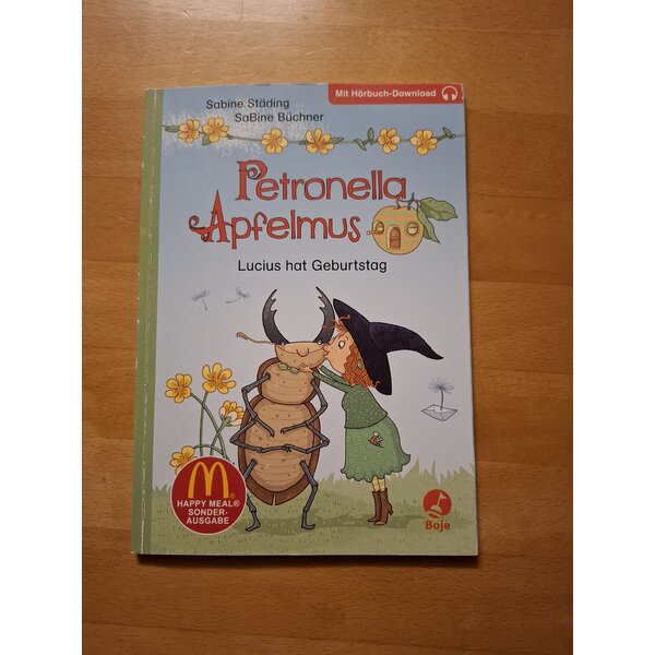Die kleine Hexe Petronella Apfelmus möchte ihren besten Freund Lucius zum Geburtstag überraschen. Zu dem Fest im Garten sollen alle kommen: Lea und Luis Kuchenbrand, die Apfelmännchen und noch viele mehr. Doch gerade als Petronella für den Hirschkäfer ein Geschenk zaubern möchte, verhaspelt sie sich. Wer kann ihr jetzt bloß helfen?