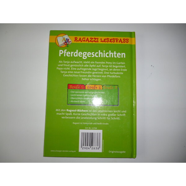 Als Tanja aufwacht, steht ein fremdes Pony im Garten und frisst genüsslich alle Äpfel auf. Tanja ist begeistert. Papa nicht. Eine aufregende Jagd beginnt, an deren Ende Tanja eine neue Freundin gewinnt. In drei turbulenten Geschichten finden Pferdefans alles, was ihr Herz höher schlagen lässt. - Spannende und lustige Geschichten für geübtere Leser - Leicht lesbare Großdruckschrift - Übersichtliche Leseabschnitte - Ab etwa 8 Jahren Mit den Ragazzi-Büchern ist das Lesenlernen leicht und macht Spaß. Kurze Geschichten in extra großer Schrift verbessern die Leseleistung Schritt für Schritt.