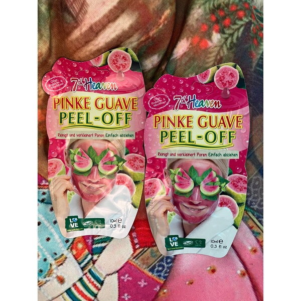 Pinke Guave Peel-Off Maske. Reinigt und verkleinert Poren. Die Kombination aus Guave und Mangostane sorgt für ein ultrafrisches Hautbild, reinigt tiegrnwirksam, verfeinert die Poren und reduziert Rötungen dank Vitamin C und Antioxidantien. 2 Masken je 10 ml.