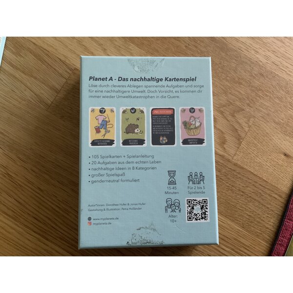 Jede Person versucht nacheinander 3 Aufgabenkarten zu erfüllen, indem sie ihre Karten 2 zu 1 oder 1 zu 2 tauscht (2 Karten ablegen und eine Karte aufnehmen ODER eine Karte ablegen und 2 Karten aufnehmen). Dabei kann vom verdeckten Stapel ODER vom Team Planet A aufgenommen werden, abgelegt werden kann NUR beim Team Planet A. Eine Spielrunde gewonnen hat, wer zuerst seine Aufgabenkarte erfüllt hat und KEINE anderen Karten (außer Umweltheld*in und Umweltaktivist*in) mehr auf der Hand hält.