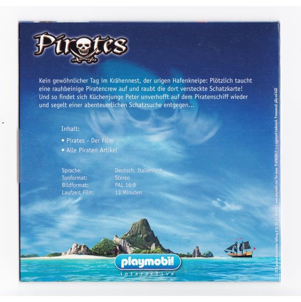 Covertext: "Kein gewöhnlicher Tag im Krähennest, der urigen Hafenkneipe: Plötzlich taucht eine raubeinige Piratencrew auf und raubt die dort versteckte Schatzkarte! Und so findet sich Küchenjunge Peter unverhofft auf dem Piratenschiff wieder und segelt einer abenteuerlichen Schatzsuche entgegen..." - steht auch auf dem 2. Foto