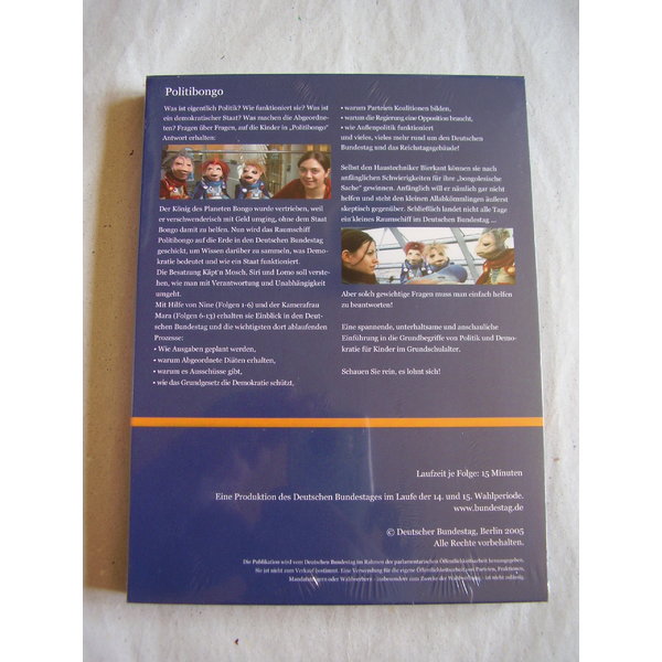 Wie funktioniert Politik? Was heißt eigentlich Demokratie ganz genau? Warum bekommen Politiker Diäten? Diese und andere Fragen zeigen das große Interesse von Kindern an politischen Sachverhalten. Diese aber auch verständlich zu beantworten, ist oft nicht leicht. Diese DVD enthält 13 spannende Folgen vor authentischer Bundestagskulisse, in denen nicht nur junge Zuschauer ab 6 Jahren erfahren, wie das politische System der Bundesrepublik funktioniert. Gemeinsam mit drei Bewohnern des fernen Planeten Bongo lernen sie – einfach aber nicht vereinfachend erklärt – das Grundwissen der parlamentarischen Demokratie.