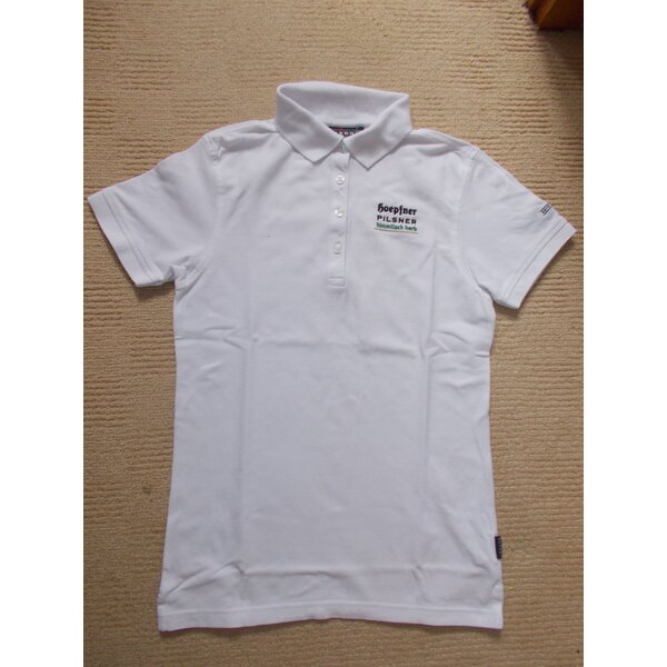 Farbe: weiß, im Brustbereich mit aufgestickter Werbeschrift " Höpfner Pilsner himmlisch herb " und am rechten Ärmel das Logo und die Aufschrift " seit 1798"