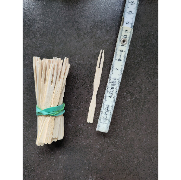 Meiner Zählung nach 39 Pimmesgäbelchen aus Holz (Bambus?)