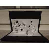 Wenn die Karte geöffnet wird, stellt sich die Schneelandschaft auf.Auf dem schwarzen Karton schreibt man am besten mit einem weißen, silbernen oder goldenen Stift.