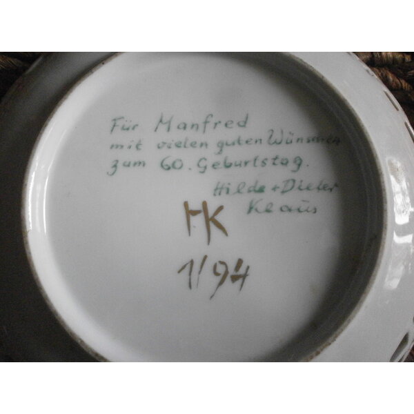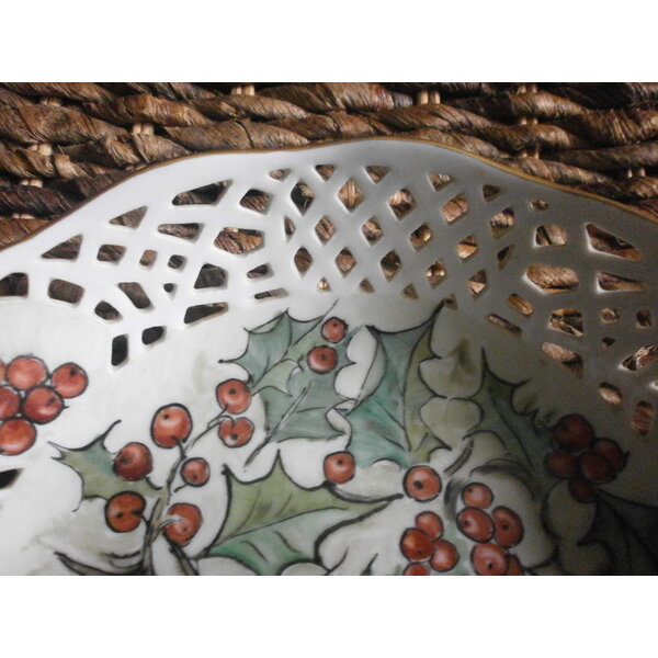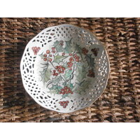 Porzellanschale Stechpalmen Motiv mit Beeren und filigranem Rand