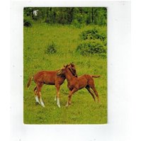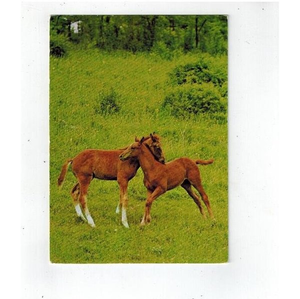 Postkarte Pferde, zwei kleine Fohlen auf Weide (1713)