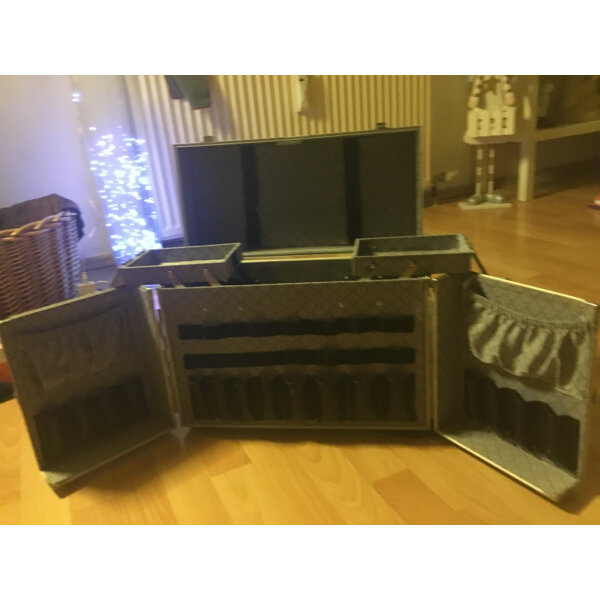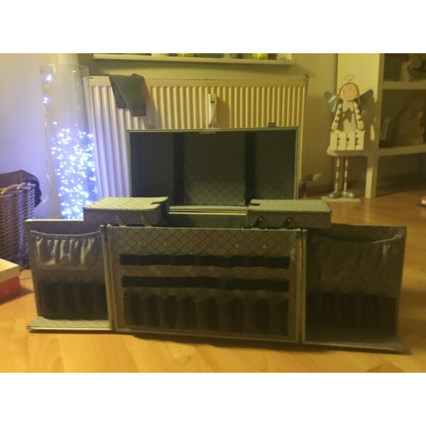 Perfekt für Pinsel, Accessoires, Puder, Haarutensilien, 2 Fächer oben zum ausziehen, darunter ein großer Stauraum, die 2 Seitenteile lassen sich auch ausklappen mit immenser Kapazität! Stauraum für Pinsel, Kayalstifte, Lipgloss, Lippenstifte, Pinsel, etc